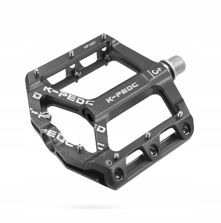 Pedały wykonane z aluminium, anodowane, oś cr-mo. Konstrukcja odporna na uderzenia, lekkie 390g(para), wymiary 99x100 mm. Posiadają 3 łożyska maszynowe, dzięki szczelnie zamkniętej obudowie są odporne na warunki zewnętrzne. Duża powierzchnia oraz 7 wymiennych pinów na każdej stronie, zapewnia bardzo dobry kontakt z obuwiem.