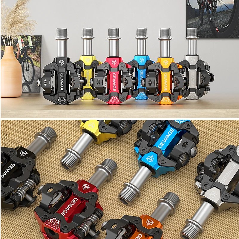 Pedały Rowerowe Zatrzaskowe Dwustronne SPD z Blokami GEWAGE GE-152 złote